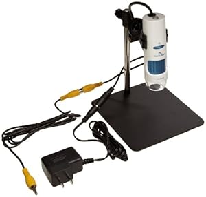 0.6 mega-pixel microscope has six built-in, LED lights with brightness control, and the ability to be turned on and off